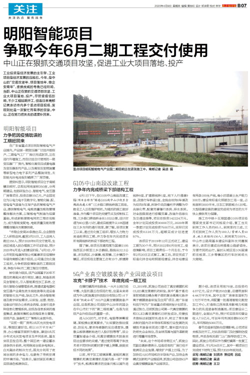 工业投资是经济发展的主引擎,工业项目是经济发展的压舱石。今年,是中山的“交通攻坚年、项目落地年、稳企安商年”,重振虎威的号角已经吹响,当前,中山正在狠抓交通项目攻坚,工业大项目落地、投产。尽管受疫情影