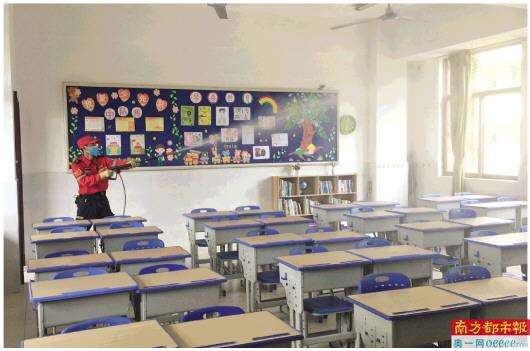 铁城小学开展学校消杀工作,为学生返校做好准备。 南都记者 吴进 摄