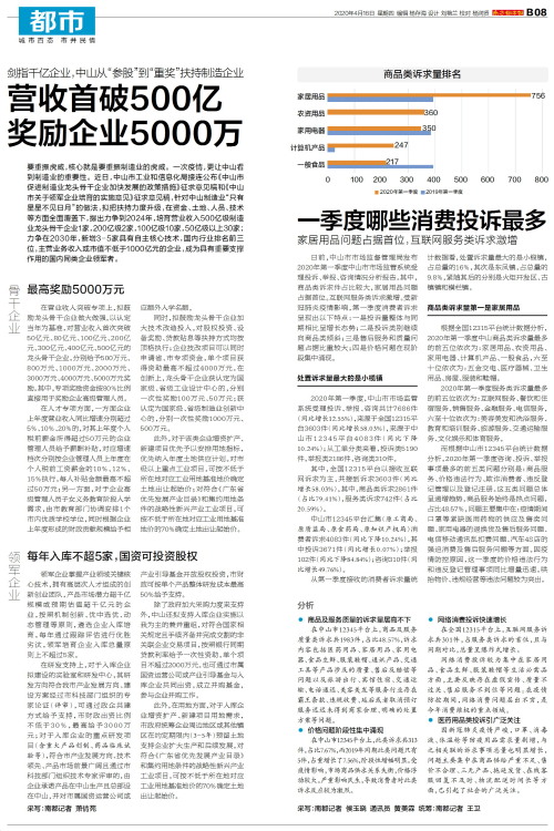 日前,中山市市场监督管理局发布2020年第一季度中山市市场监管系统受理投诉、举报、咨询情况分析报告。其中,商品类诉求件占比较大,家居用品问题占据首位。互联网服务类诉求激增。受新冠肺炎疫情影响,第一季度
