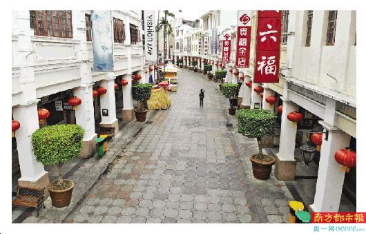 ↑2月6日拍摄的孙文西路步行街,街道空荡荡,十分冷清。