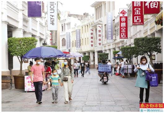 ←4月21日拍摄的孙文西路步行街,前来逛街的市民逐渐增多。
