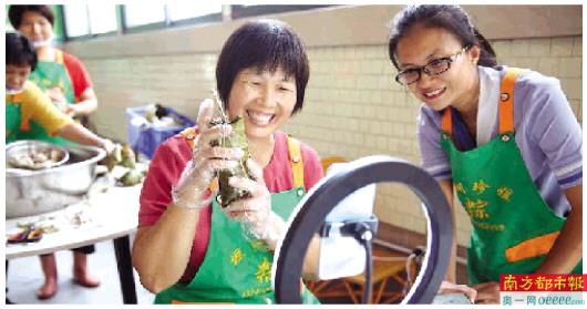 “直播对于我来说,真的很新鲜,没想到还能这样,但直播也是要学习的。”珍姐联系了坦南创客园,5月21日开始上直播课程。“大家好啊,我是珍姐啊,我卖粽30年了,真材实料啊,不只是端午啊,全年都有粽子吃啊,想吃就点右下角哦。”她用广东话味的普通话,对着手机镜头,和网友交流,“粉丝们可以给多点意见啊,让珍姐做得更好,到我店里来,可以免费送给你吃啊。”