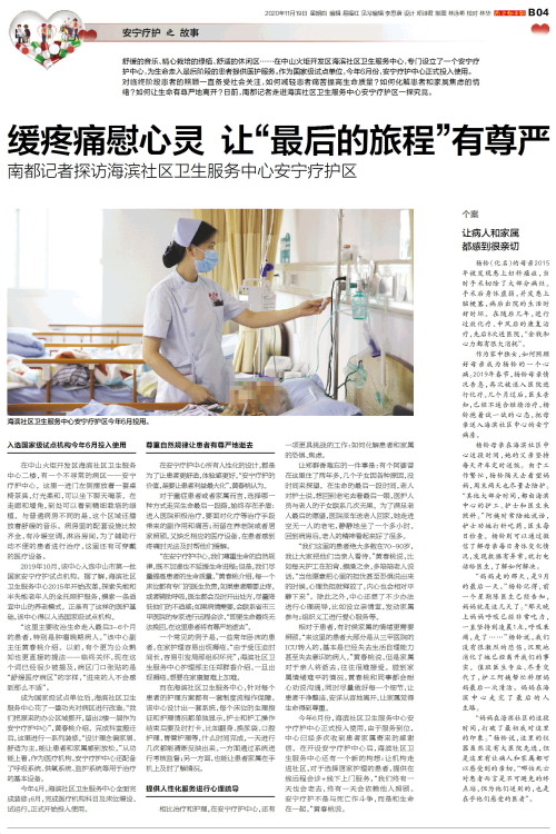 安宁疗护之故事舒缓的音乐、精心栽培的绿植、舒适的休闲区……在中山火炬开发区海滨社区卫生服务中心,专门设立了一个安宁疗护中心,为生命走入最后阶段的患者提供医护服务。作为国家级试点单位,今年6月份,安