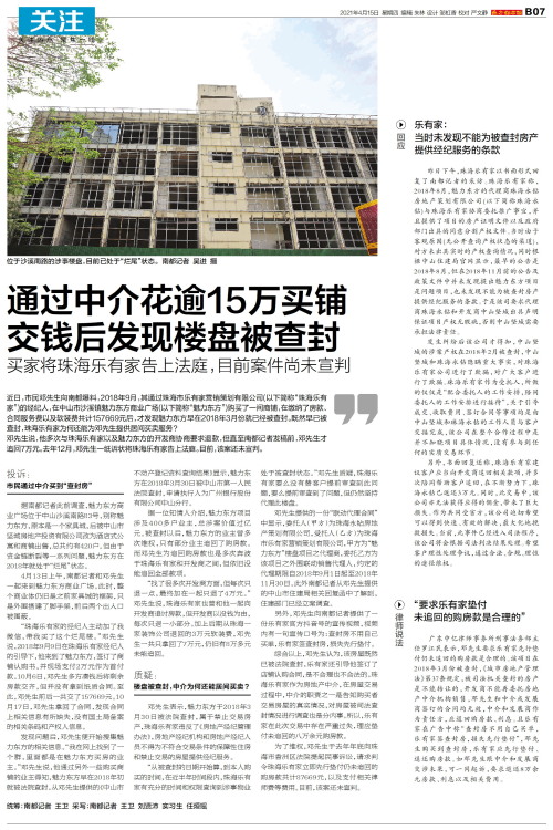 通过中介花逾15万买铺 交钱后发现楼盘被查封