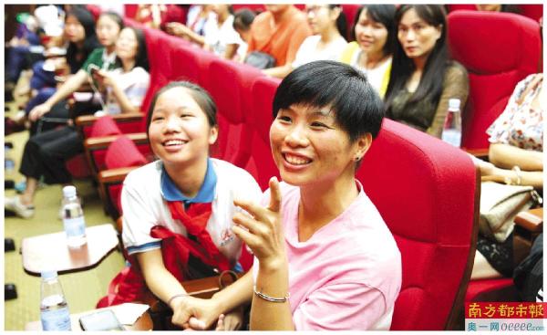 ↑小升初电脑派位,一名学生被派中,笑逐颜开。