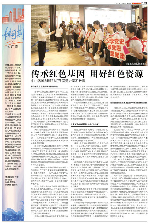 歌舞、器乐、情景演绎、说唱……在90分钟的时间里,19个节目轮番上阵,为观众展示了中国共产党百年来带领中国人民进行革命、建设、改革的壮美画卷。这是日前上演的中山市庆祝中国共产党成立100周年文艺演