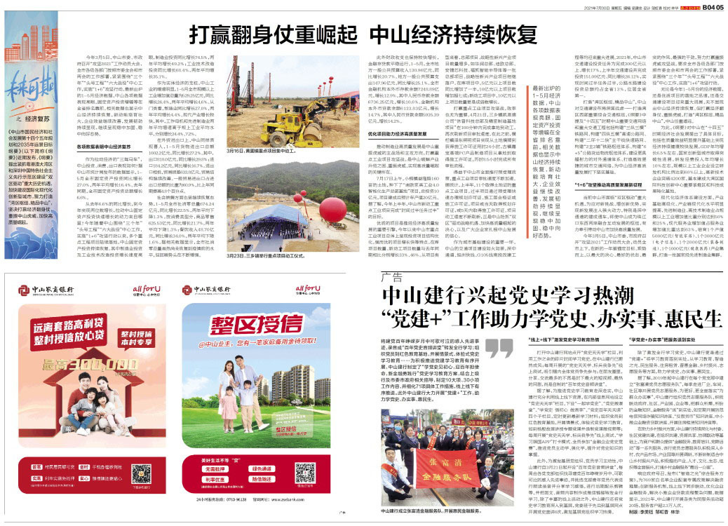 中山建行兴起党史学习热潮“党建+”工作助力学党史、办实事、惠民生