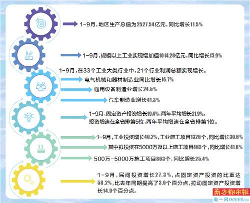在各项经济指标中,中山固定资产投资仍然是亮点。1-9月,中山固定资产投资增长19.4%,增速环比1-8月高1.8个百分点,两年平均增长21.9%。中山投资增速在全省排第5位,两年平均增速在全省排第1位。近年来,在“3+4”重大产业平台布局下,中山重点镇街发展势头强劲。