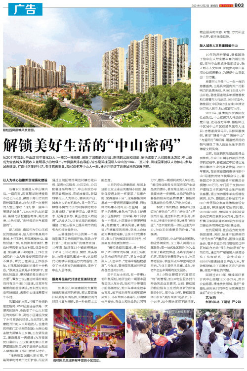 从2011年算起,中山这10年变化巨大:一栋又一栋高楼,刷新了城市的天际线;新增的公园和绿地,悄悄改变了人们的生活方式;中山还成为全省城乡居民收入差距最小的地级市,幸福指数排名靠前。这也是碧桂园进