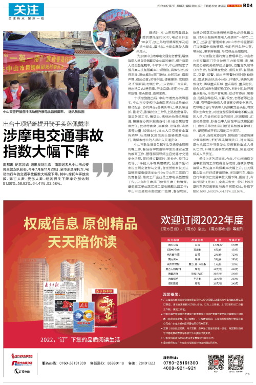 南都讯 记者吕婧 通讯员刘洪希 南都记者从中山市公安局交警支队获悉,今年7月至11月20日,全市涉及摩托车、电动自行车的交通事故指数大幅度下降,其中,摩托车事故宗数、死亡人数、受伤人数、经济损失下