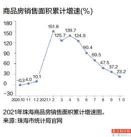 不可否认的是,随着开发商爆雷事件频出,2021年开发商资金链紧张已经是不争的事实。就全年看,珠海2021年商品房销售面积累计增速也在逐月下降,2021年1月增速高达151.8%,10月增速仅为23.2%。年初“价格跳涨”,年末促销,2021年珠海楼市年初和年末差异大,但整体而言仍较为平稳。