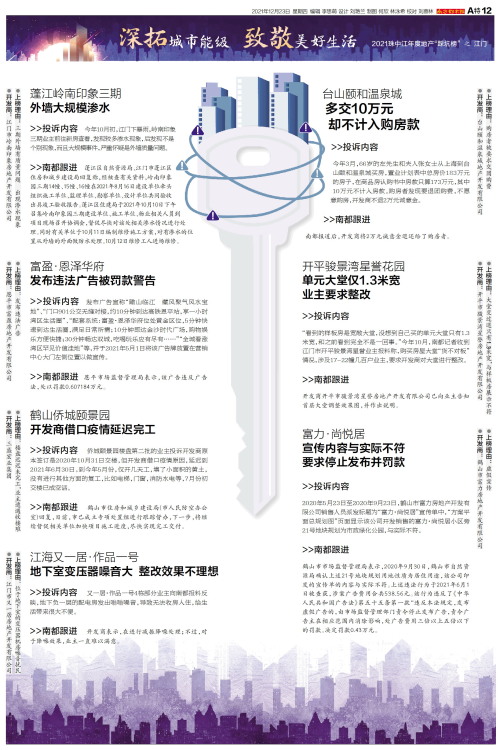 蓬江岭南印象三期 外墙大规模渗水 开发商:江门市岭南印象房地产开发有限公司 上榜理由:三期外墙有质量问题 出现渗水现象 >>投诉内容 今年10月初,江门下暴雨,岭南印象三期