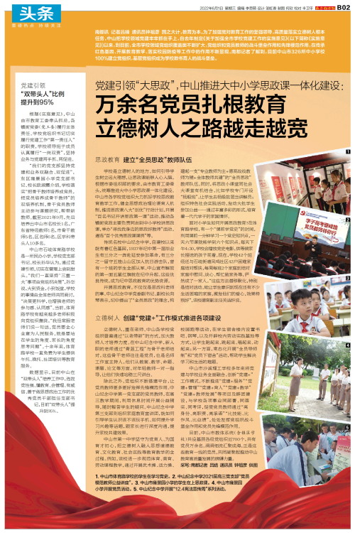 1.中山市体育路学校的学生在学习党史。 2.中山纪念中学2021届高三党支部“党员模范教师公益讲座”。 3.中山市雍景园小学的学生在上思政课。 4.中山