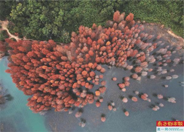 大片落羽杉,如油画般,在静谧世界里,散发迷人的魅力,随着落羽杉披上“红装”,