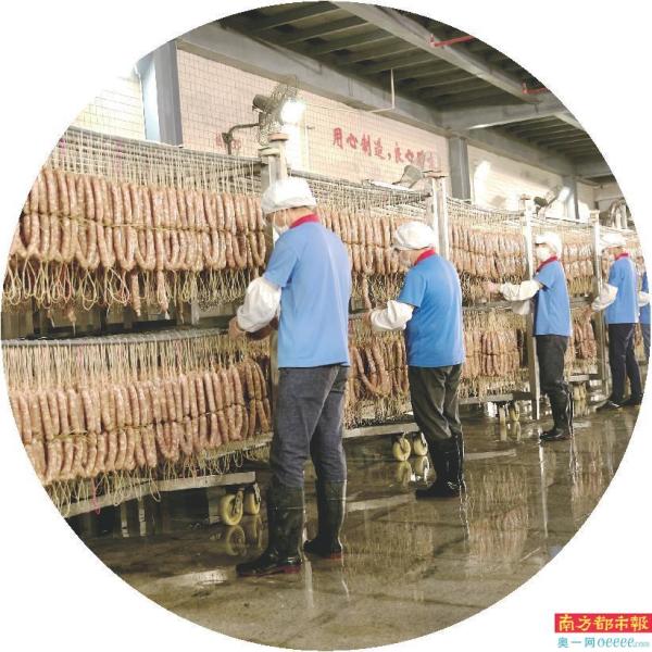 腊味产业园内,工人们在忙碌着进行腊味生产。
