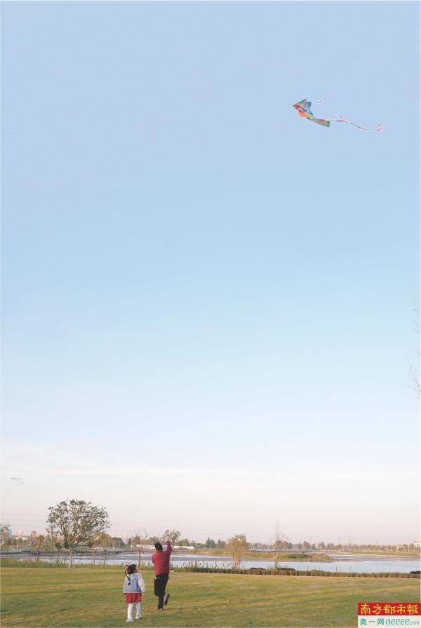 市民在中山人才公园放风筝。