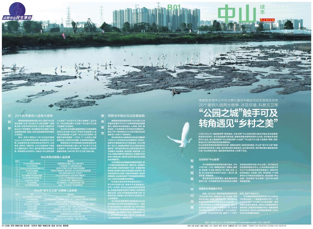 12月22日上午,南都智库周“民呼我应,为你点赞”中山市民点赞礼暨深中融合互动发展报告发布仪式举行,本次活动由南方都市报、南都高质量发展研究院中山分院、深中融合互动研究中心主办。会上重磅发布“中山