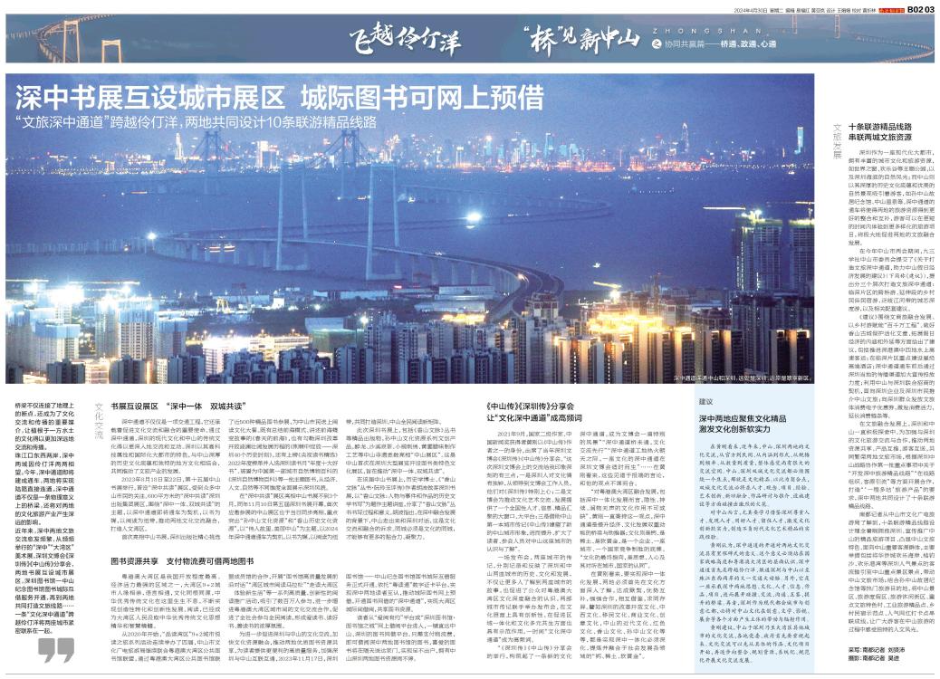 协同共赢篇——桥通、政通、心通 桥梁不仅连接了地理上的断点,还成为了文化交流和传播的重要媒介,让植根于一方水土的文化得以更加深远地交流和传播。 珠江口东西两岸,深中两城因伶仃洋两两相望。今年,