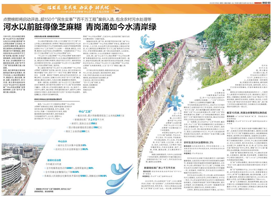 案例 今年10月,2024年南方都市报“中山百千万工程点赞榜”以及2024年南方都市报“中山市民点赞榜”正式启动,中山各单位踊跃申报,截至目前已收到中山各领域逾60个单位超150个案例报名。案例