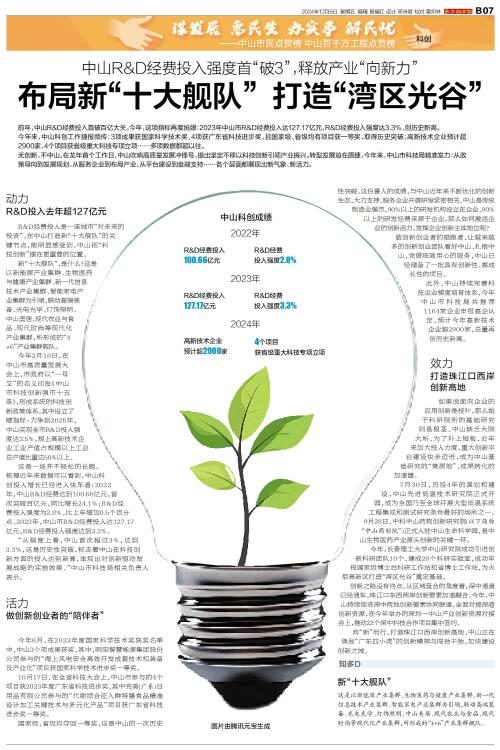 科创 前年,中山R&D经费投入首破百亿大关。今年,这项指标再度抢眼:2023年中山市R&D经费投入达127.17亿元,R&D经费投入强度达3.3