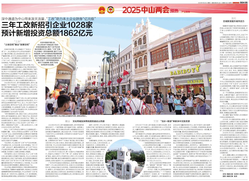 预热之产业聚焦 自深中通道开通以来,中山市在多个领域迎来了前所未有的发展机遇,其中“工改”和文旅融合发展尤为引人瞩目。“工改”方面,中山市通过一系列创新举措,提升了土地利用效率,为产业升级和
