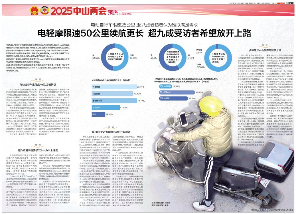 电轻摩限速50公里续航更长 超九成受访者希望放开上路