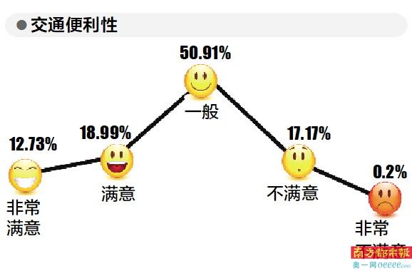 调查结果显示,50.91%的受访者对交通便利性表示一般,17.17%的受访者表示不满意,合计68.08%,交通便利性亟须改善。