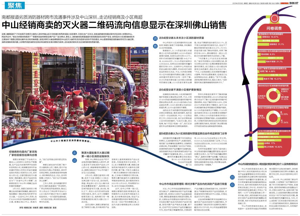 近期,南都报道了1700余具不合格灭火器流入深圳市南山区沙河街道红树西岸花园小区的事件,引发社会广泛关注,该批消防器材流通过程中涉及深圳、东莞和中山。 网友热议中,“物业为何敢采购假货?”“普通