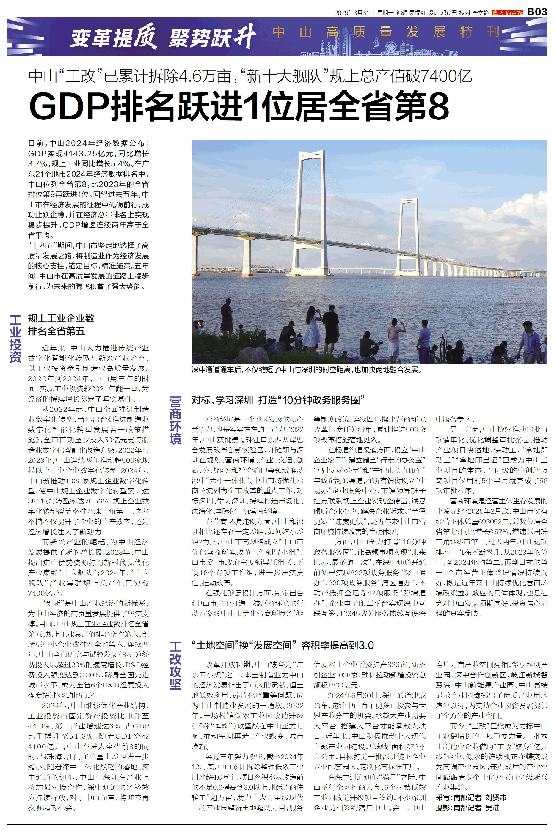 日前,中山2024年经济数据公布:GDP实现4143.25亿元,同比增长3.7%,规上工业同比增长5.4%。在广东21个地市2024年经济数据排名中,中山位列全省第8,比2023年的全省排位第9再