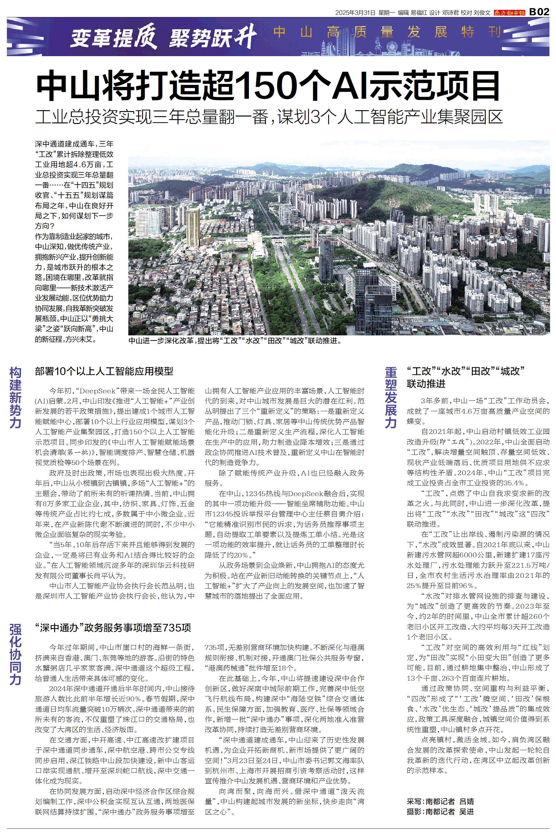 中山将打造超150个AI示范项目