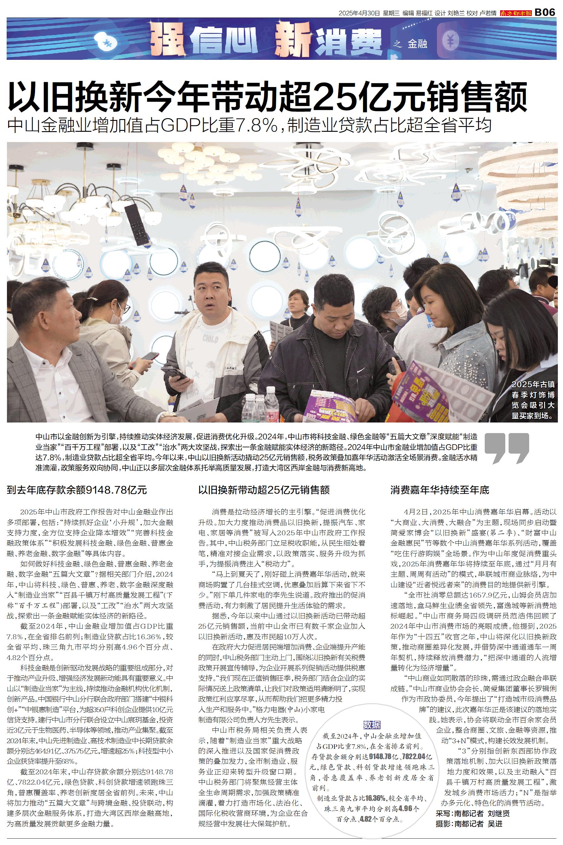 中山市以金融创新为引擎,持续推动实体经济发展,促进消费优化升级。2024年,中山市将科技金融、绿色金融等“五篇大文章”深度赋能“制造业当家”“百千万工程”部署,以及“工改”“治水”两大攻坚战,探索
