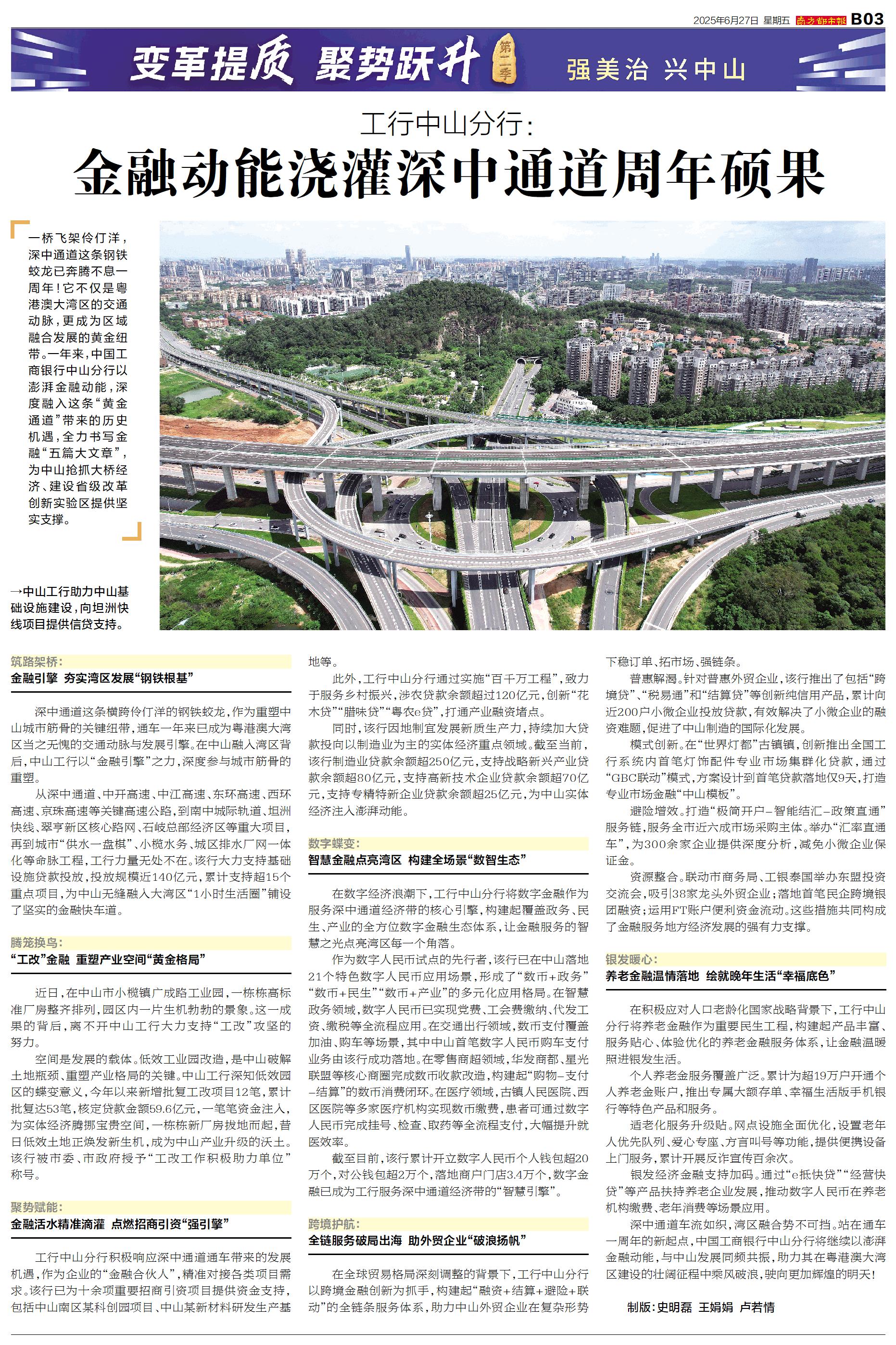 工行中山分行:金融动能浇灌深中通道周年硕果