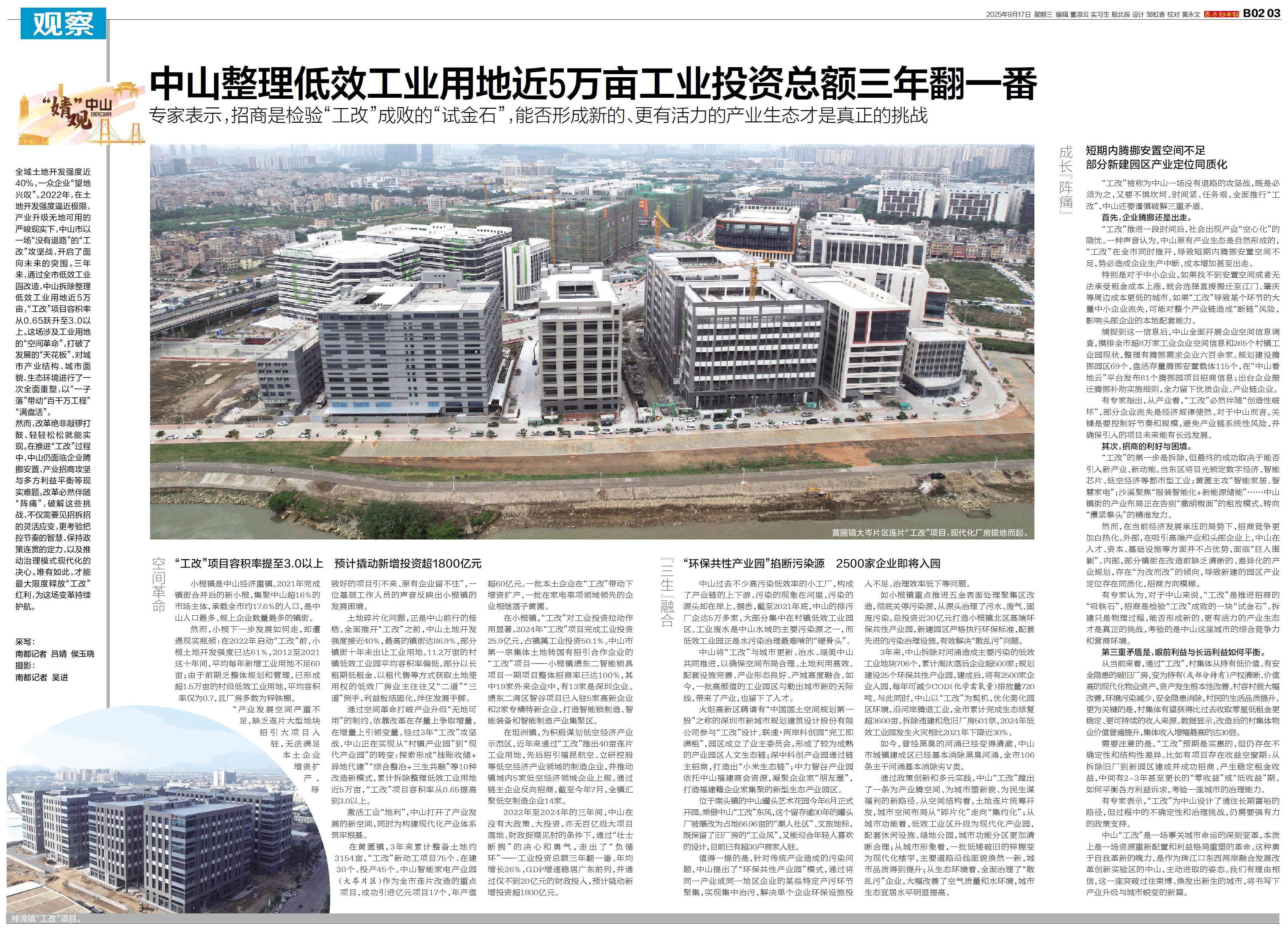 中山整理低效工业用地近5万亩 工业投资总额三年翻一番