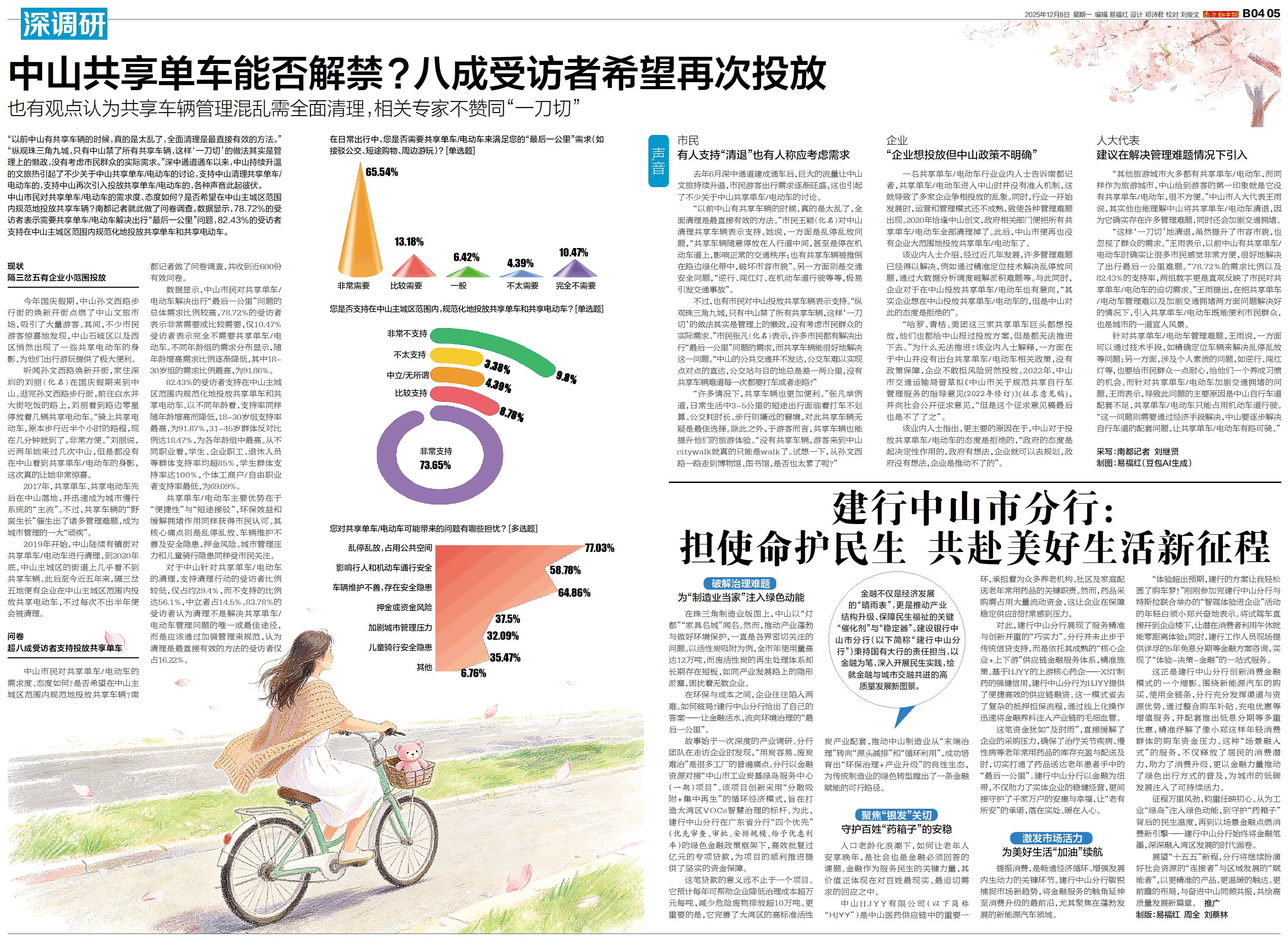 中山共享单车能否解禁?八成受访者希望再次投放