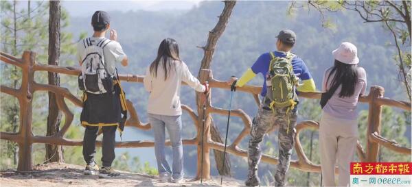 游客在长坑郊野步道观景台休憩。