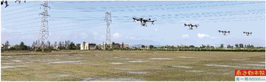 多架无人机来回在田地上空盘旋、播种,操机手在田埂上熟练地操作,几分钟时间,就能播种完一亩地。这样的场景出现在3月5日,2020年江门市春耕生产现场会,台山市海宴镇南丰村的春耕现场。