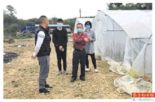 台山市农业农村局工作人员了解泰国虎纹蛙养殖场情况。