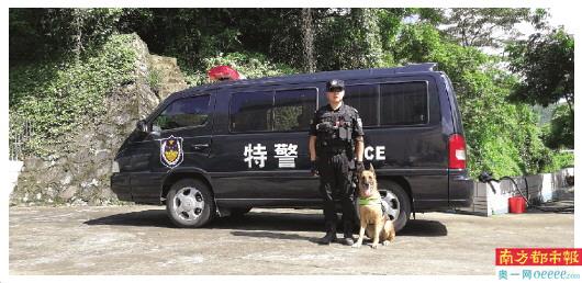 2015年,鹤山双合“1·14”命案发生后,四只警犬被运送至鹤山市双合镇合成村案发现场参与搜捕,洋洋就是其中一只。