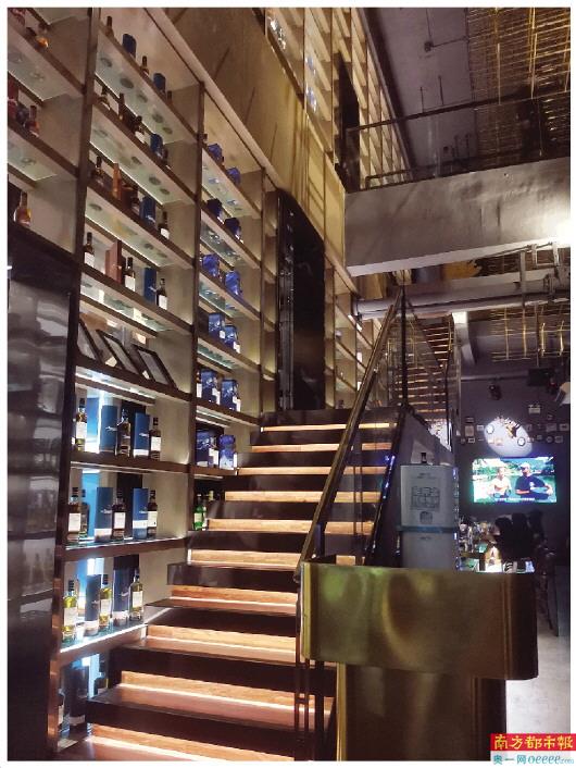 大图:12米高的酒柜墙上摆满了来自世界各产地的威士忌。 南都记者 罗韵姿 摄