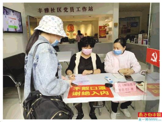 丰雅社区是由星汇名庭、上城骏园、嘉悦名都3个封闭楼宇小区组成的社区。为做好“外防输入”,英海燕联系物业管理公司,在3个封闭小区设立了10个疫情防控点,除了做好小区人员的体温监测、劝导外来人员暂缓探访外,她还在各点派发宣传单张、张贴防疫海报、上户宣传,提高群众防控疫情的知晓率。抗“疫”以来,英海燕和同事们已累计入户宣传9078户次;累计覆盖30014人次。