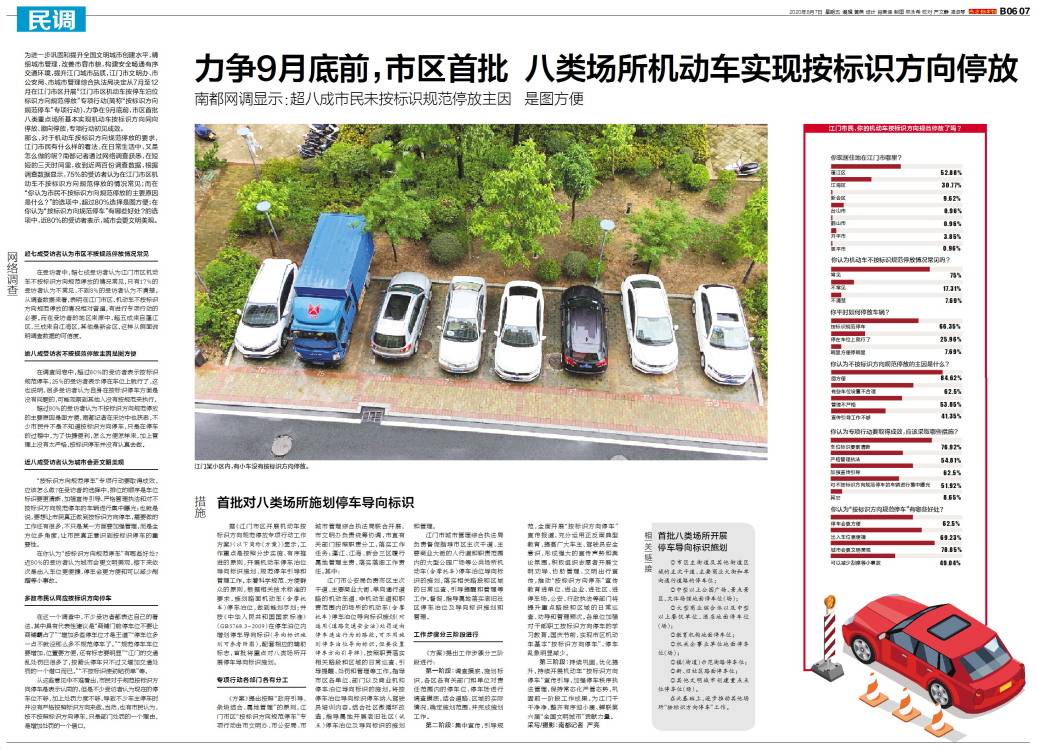 力争9月底前,市区首批八类场所机动车实现按标识方向停放