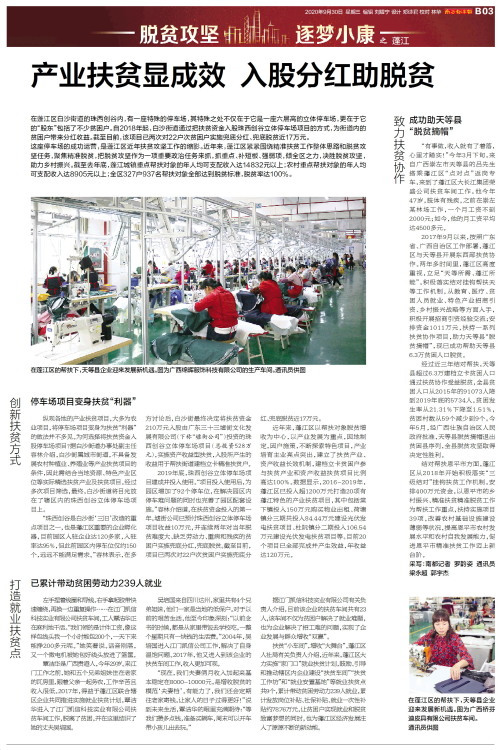 之蓬江在蓬江区白沙街道的珠西创谷内,有一座特殊的停车场,其特殊之处不仅在于它是一座六层高的立体停车场,更在于它的“股东”包括了不少贫困户。自2018年起,白沙街道通过把扶贫资金入股珠西创谷立体停车