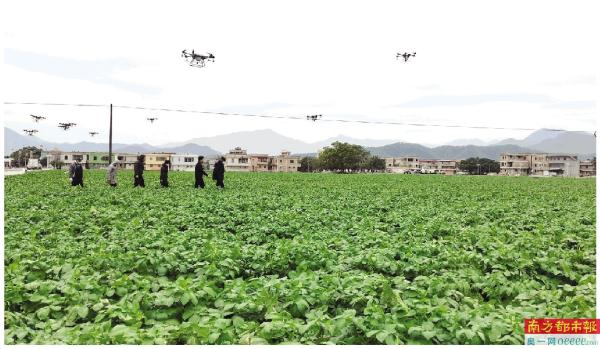 为了保证马铃薯的正常生产,恩平农业部门调集无人机进行联合喷洒防冻剂 。
