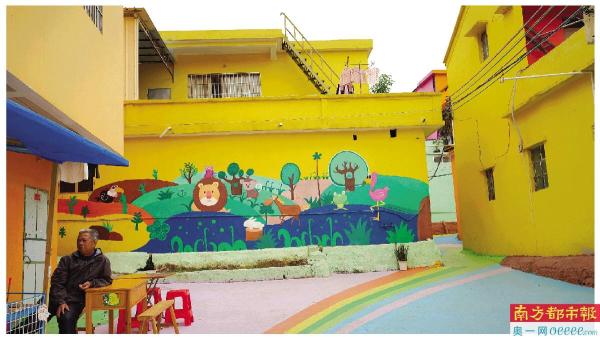 在改造过程中,按照该村临近儿童公园的位置特点,决定对120多栋房屋建筑外立面进行粉刷。在粉刷前,村内多次召开村民代表大会,充分听取村民意见,全面兼顾整体效果和各家各户的满意进行“换装”。最终,统一使用环保原料,将全村居民楼刷成黄、橙、天蓝、浅绿色等各种颜色。