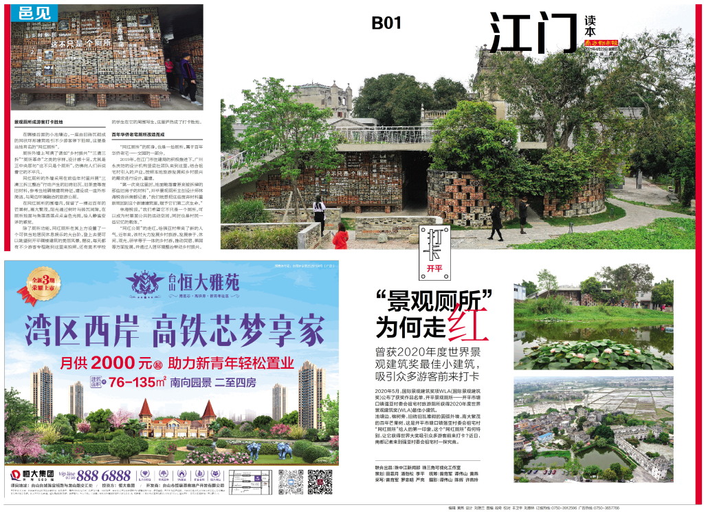 打卡开平 2020年5月,国际景观建筑奖项WLA(国际景观建筑奖)公布了获奖作品名单,开平景观厕所——开平市塘口镇强亚村委会祖宅村旅游厕所获得2020年度世界景观建筑奖(WLA)最佳小