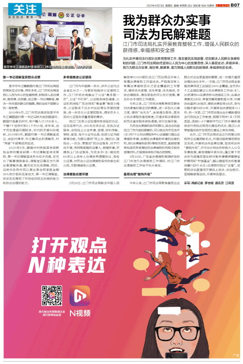 为扎实开展司法行政队伍教育整顿工作,落实爱民实践部署,切实解决人民群众急难愁盼的问题,江门市司法局始终坚持以人民为中心的发展思想,深入基层走访,多措并举,努力为群众办实事、做好事、解难事,着力增强