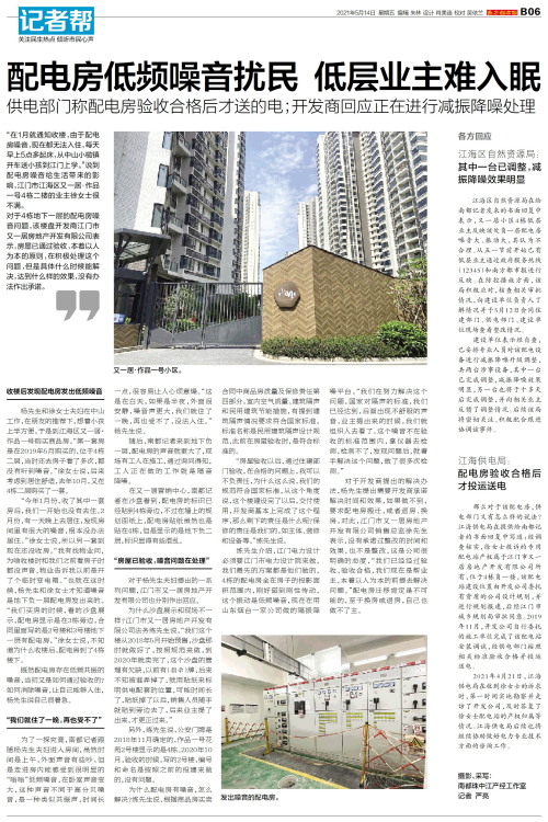 配电房低频噪音扰民 低层业主难入眠