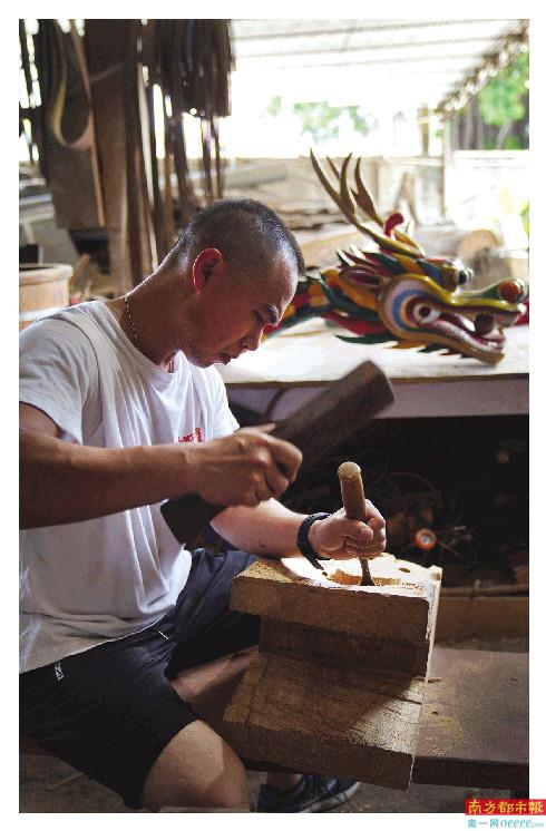 入行学艺 80后入行10年刻龙舟 已雕刻20多个龙头