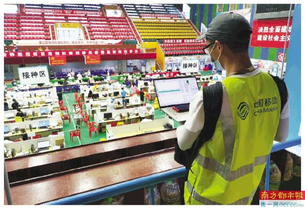 江门移动为疫苗接种现场开展网络保障工作。 彭卓燊 摄
