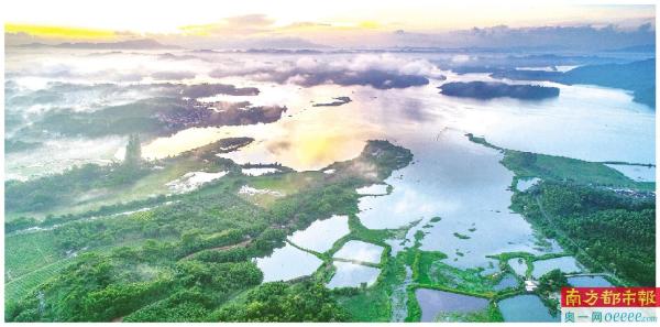 一幅天蓝地绿水清的江门画卷正加速绘制,图为大沙河水库。 林慕恒 摄